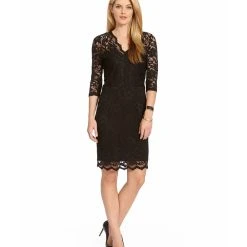 Karen Kane Petite V-Neck Scallop Lace Dress
