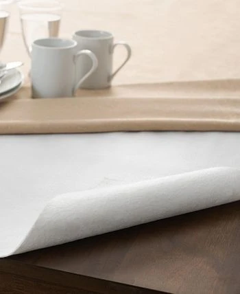 There is no better way to keep your table safe from unwanted spills and damaging heat than with this vinyl table pad with flannel backing. Our cut to fit customizable vinyl table pad protector is designed to protect your kitchen or dining tabletop from heat, moisture, spills, and scratches. Table pad surface features an elegant linen texture design and is made of heavy gauge 100% low phthalate vinyl. The soft flannel backing is 100% polyester felt. This vinyl table pad is perfect for use under your favorite tablecloth and comes in a variety of sizes and shapes to choose from. Easy care, wipe clean with a damp cloth.