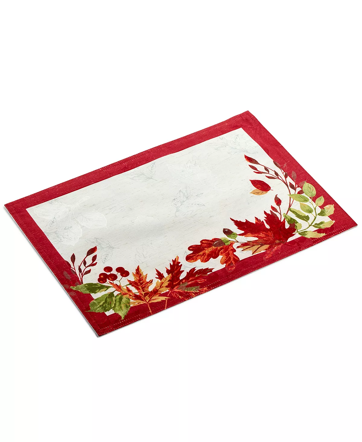 Accent your fall tablescape with the Autumnal Flourish placemat from Elrene, featuring harvest-colored leaves heat set on an elegant ivory damask ground.