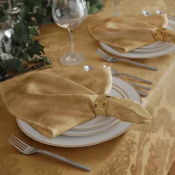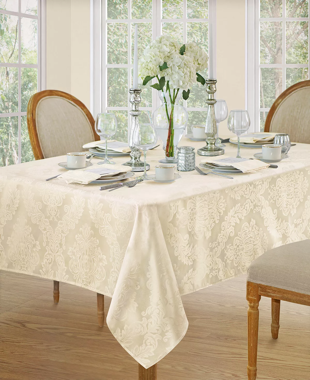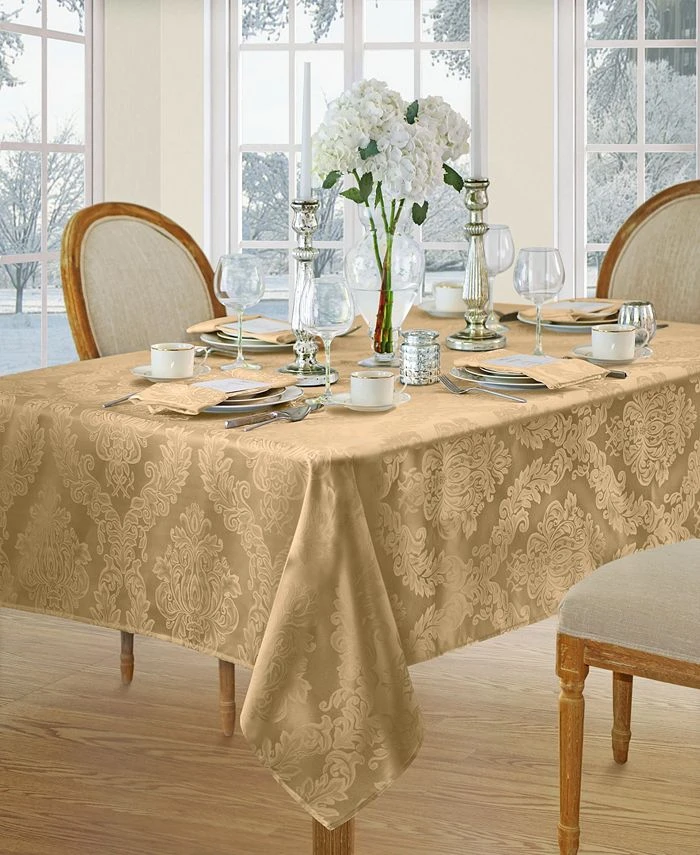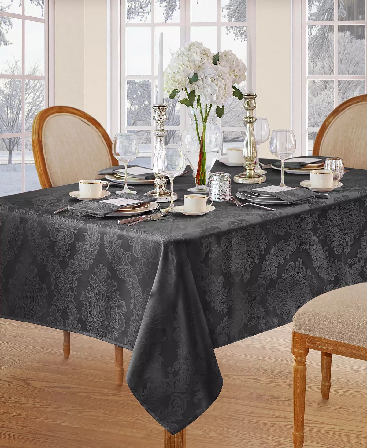 The Barcelona Damask table linens collection features a regal damask design in eight different rich, solid colors. 100% Polyester. Machine wash and dry. Made in China.
