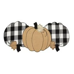 - Features black and white buffalo check pumpkins with coordinating burlap pumpkin