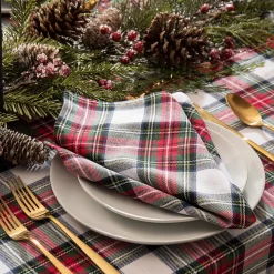 The Christmas Classic Holiday Plaid Napkin set brings a transitional, timeless look to your table setting through the Christmas and holiday season. Our versatile red, white, and green plaid napkins display a yarn-dyed pattern that complements a variety of seasonal dinnerware.