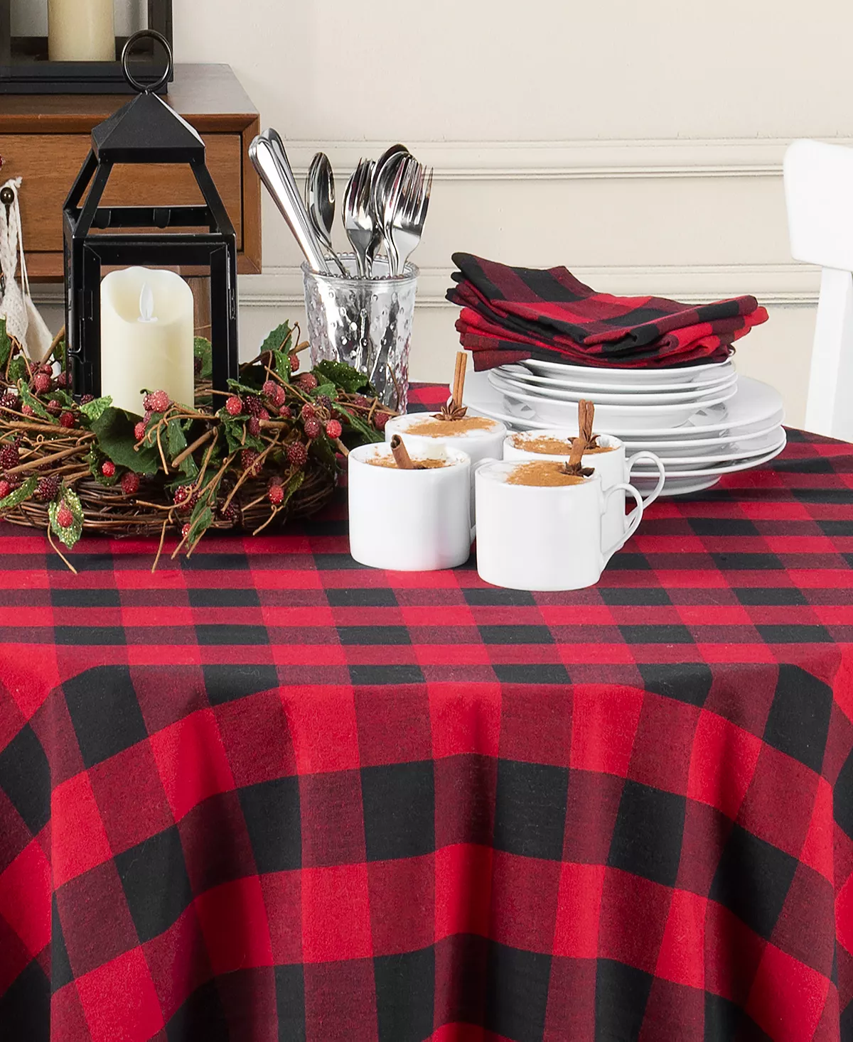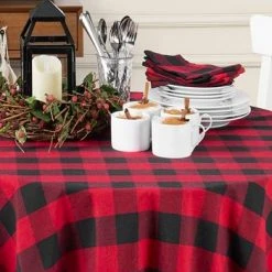 Stylish, rustic and beautiful the Farmhouse Living Collection offers everything you need to create the shabby chic, modern country home. This fashionable tablecloth is made from premium quality cotton and features a buffalo check pattern in Christmas red and black.