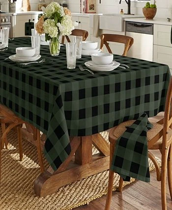 Stylish, rustic and beautiful the Farmhouse Living Collection offers everything you need to create the shabby chic, modern country home. This fashionable tablecloth features the perfect buffalo check pattern in Christmas green and black to create the best Farmhouse Holiday look.