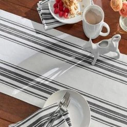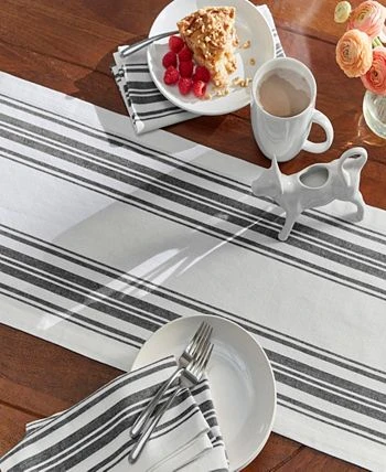 Stylish, rustic and beautiful the Farmhouse Living Collection offers everything you need to create the shabby chic, modern country home. This table runner is made from premium quality cotton and features a homestead stripe in a variety of colors.