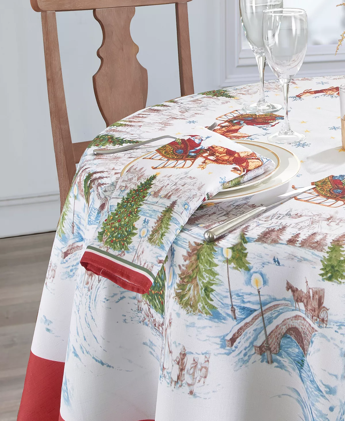 The Santa’s Snowy Sleighride printed napkin set is the perfect solution to your seasonal decorating needs. Holiday design features Christmas trees in the snow with Santa and reindeer riding above. Excellent for special occasions, events, parties, and everyday use during the holiday season.