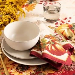This Rustic leaf and ghord pattern can enhance any dinner party or family gathering any time of year!ย ย ย This includes 1 beautiful printed easy care polyester tablecloth making it worry free entertaining.ย Coordinating napkins available.