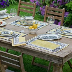 Villeroy & Boch’s classic four-piece reversible Audun placemat set incorporates an ornate floral border on one side and an intricate lattice motif on the other along with a regal gold-hue to offer a luxuriously soft and magnificent way to complete your table setting.