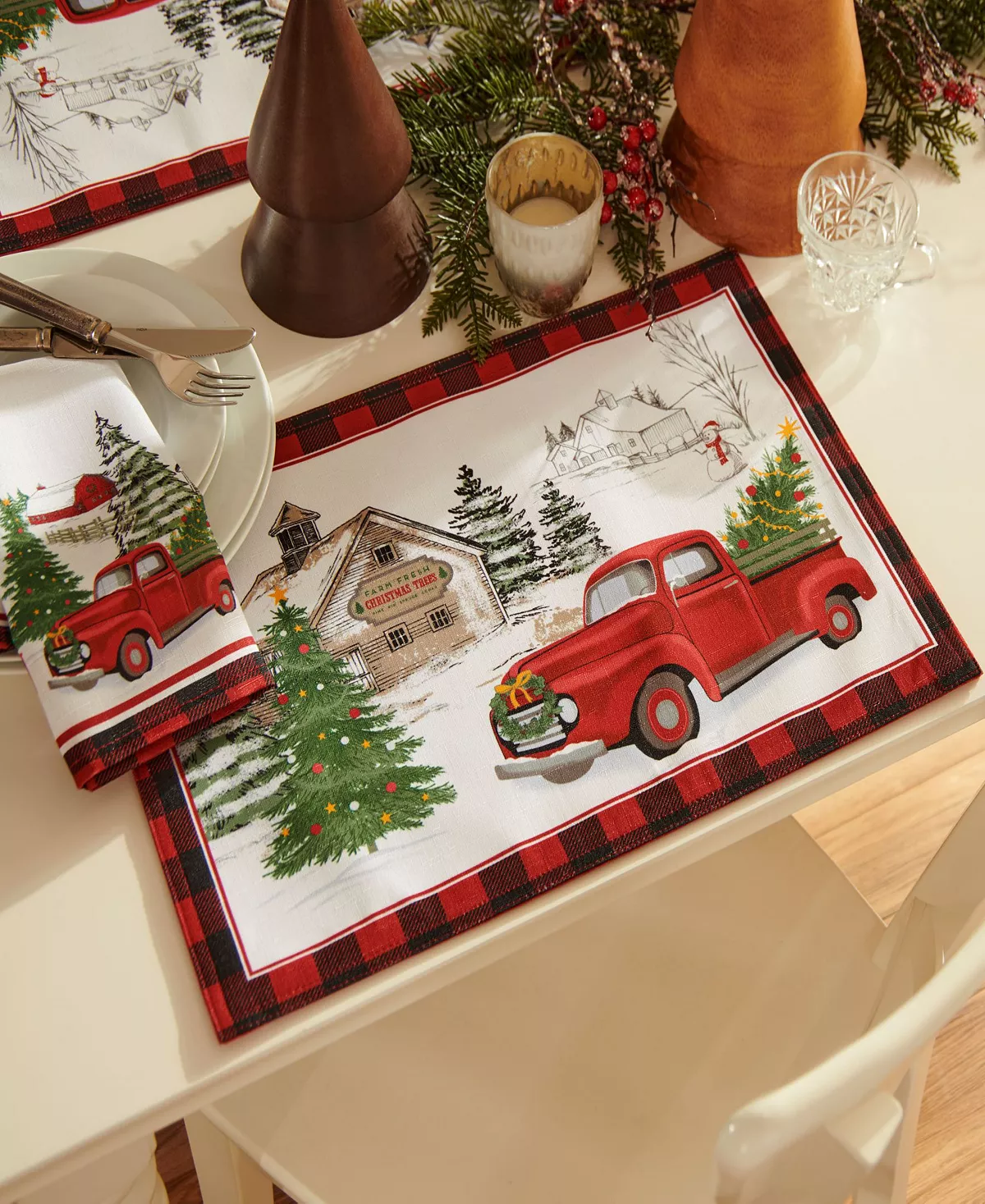 - Coordinate to Vintage Christmas Tree Farm napkins, placemats and table runner to complete the look