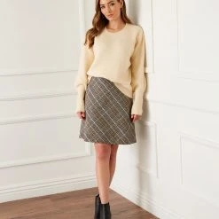Polished in plaid, this bias cut tartan skirt offers a figure-flattering silhouette. This skirt pairs perfectly with chunky cozy sweaters.