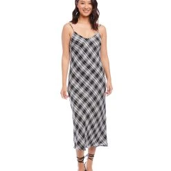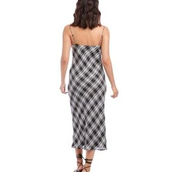 Polished in Plaid, this midi dress detailed with a charming plaid pattern and a figure-flattering cut on the bias for stunning draping. This dress is perfect for brunch, date night, and everything in between.