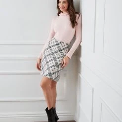 Polished in plaid, this bias cut tartan skirt offers a figure-flattering silhouette. This skirt pairs perfectly with chunky cozy sweaters.