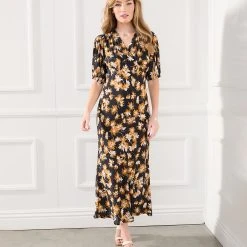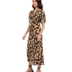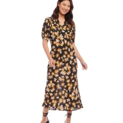 Perfect for brunch and beyond, this charming floral midi dress is a feminine favorite with its figure-flattering skirt cut on bias for stunning drapery. Statement-making puff sleeves complete the look.