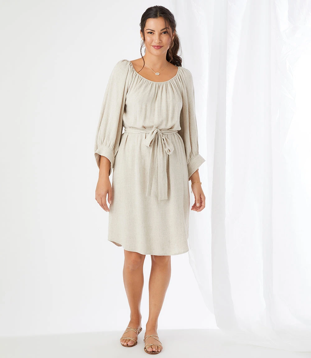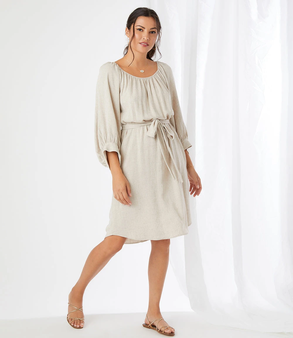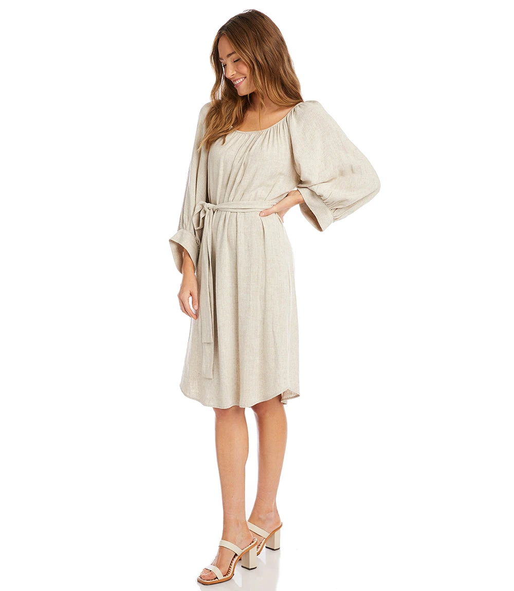Casual yet polished, this breezy dress is made with a cool and breathable linen blend. It’s detailed with statement-making billowy sleeves and a matching belt for a cinched waist.
