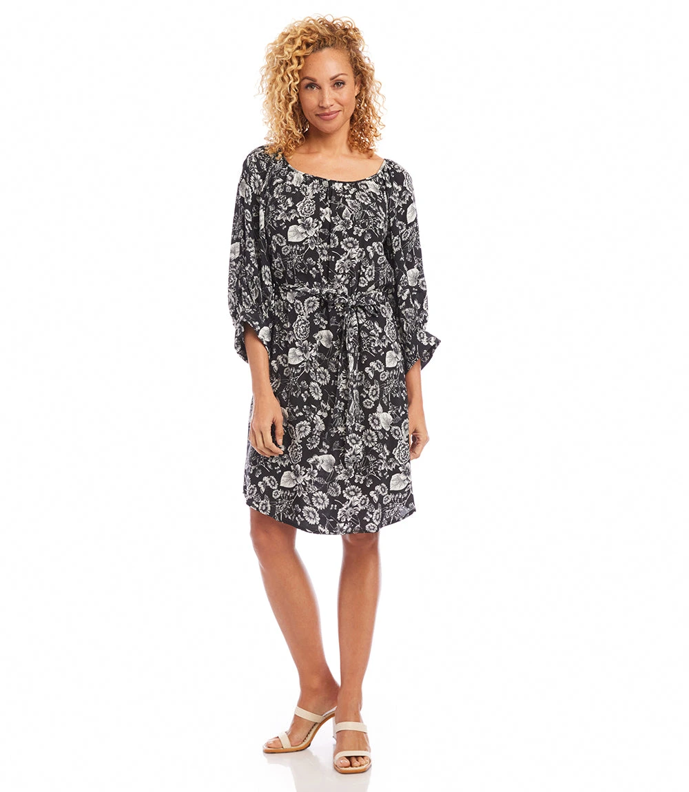 A figure-flattering silhouette elevates this stunning floral print dress thatβs detailed with statement-making billowy sleeves and a matching belt for a cinched waist.