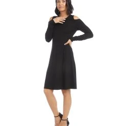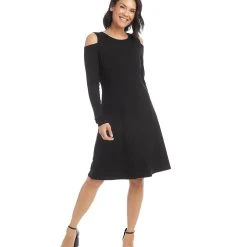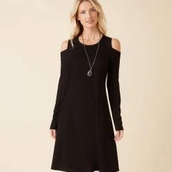 Cold-shoulder cutouts and a flattering a-line silhouette add unique detail to this comfortable dress cut from fluid stretch jersey.