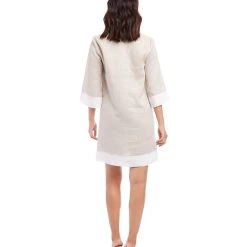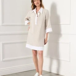 Elevate your warm weather wardrobe with this easy linen dress detailed with colorblock panels that deliver easy elegance. Linen is both cool in warm weather and warm in cool weather. It is strong, naturally moth resistant, and made from flax plant fibers, making it naturally long-lasting and sustainable.