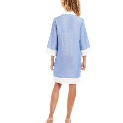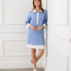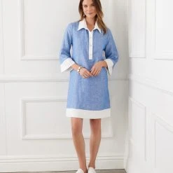 This collared dress is perfect for easy, understated style. With lightweight linen and contrasting placket, sleeve, and hem detailing, it’s the perfect option for any warm day.
