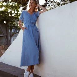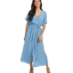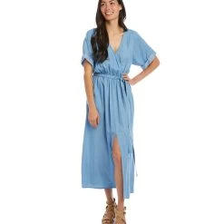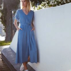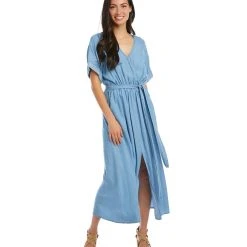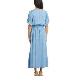 Designed for sunny seaside weekends, this tencel dress features extended roll sleeves and a front-slit hem. Slender ties cinch the waistline for a uniquely tailored look. Crafted from 100% Tencel™ washed chambray. Tencel’s supply chain is transparent; it is obtained from eucalyptus trees that are sustainably grown on farms. It is biodegradable and carries the Oeko Tex 100 certification, an international standard developed in 1992 to certify that it contains no harmful substances.