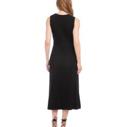Our best-selling dress is back- now available without sleeves. Elegant and alluring, this evening-ready midi dress is cut from fluid jersey-knit fabric and detailed with graceful draping. It’s finished with a stylish side-slit. Pair it with a jacket for the Spring and Fall seasons, or wear it alone all Summer long
