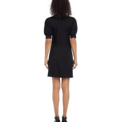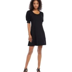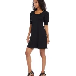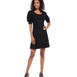 With statement-making puff sleeves, this swingy jersey knit dress offers easy elegance. This dress can easily transition from desk to dinner with a simple switch of shoes and accessories.