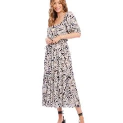 Indulge in the romantic allure of this vacation-ready dress. Its Bohemian styling provides an on-trend look, while the tiered midi silhouette offers soft movement. It also features a flattering cinched waist and matching self-tie.