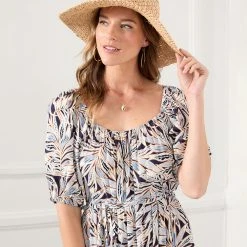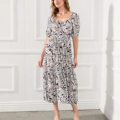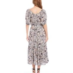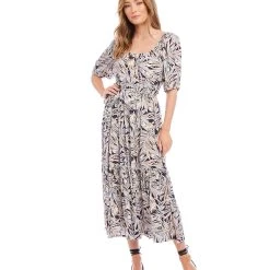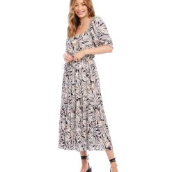 Indulge in the romantic allure of this vacation-ready dress. Its Bohemian styling provides an on-trend look, while the tiered midi silhouette offers soft movement. It also features a flattering cinched waist and matching self-tie.