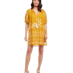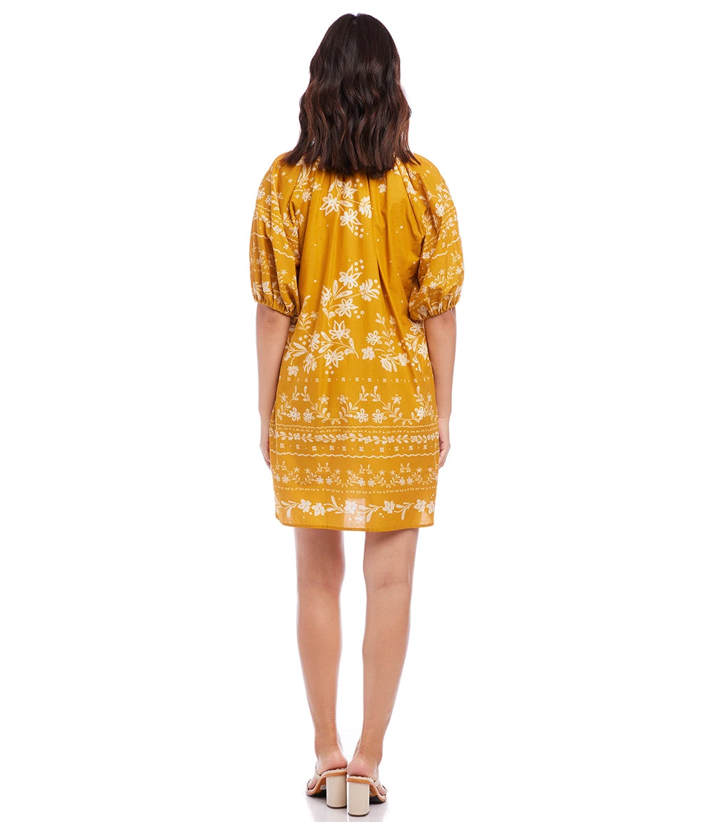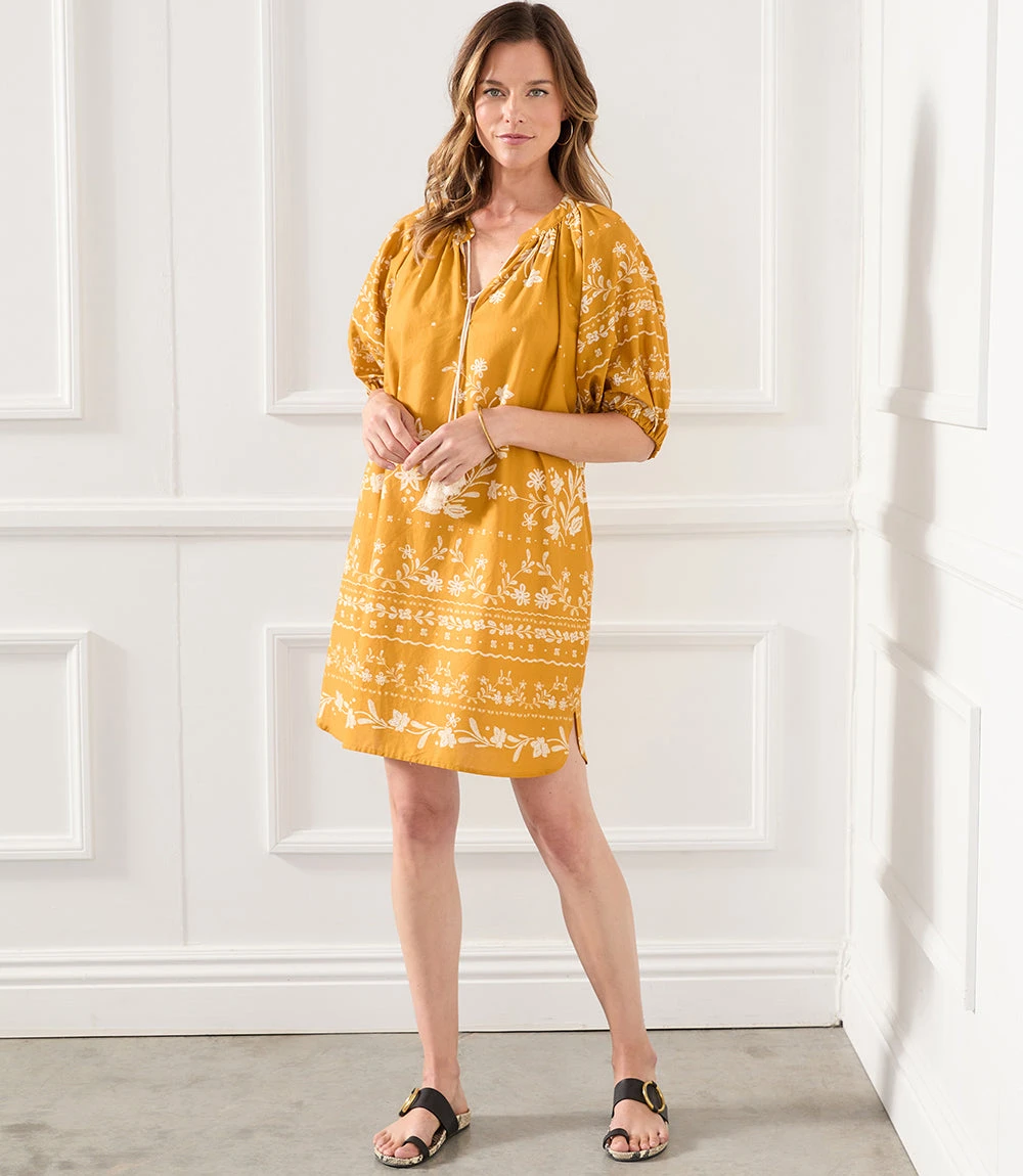 A contrasting floral print adds easy charm to this cotton dress detailed with flouncy tassel ties. It’s finished with statement-making puff sleeves.
