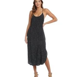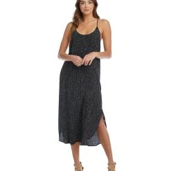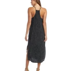 Designed to add a dose of bohemian femininity to your wardrobe, this free-flowing sleeveless dress is patterned with a stitch print. It also features leg-flashing side-slits.