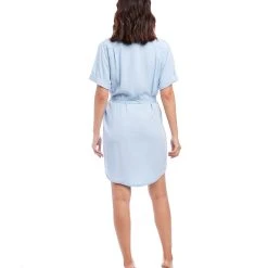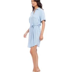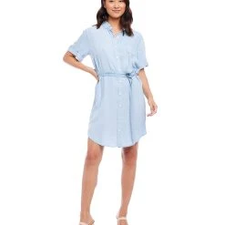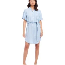 Soft and lightweight chambray shapes an effortlessly feminine shirtdress detailed with cuffed sleeves and a polished button front. It also features a flattering cinched waist and matching belt.