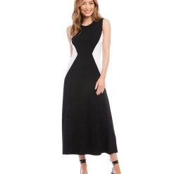 Colorblock panels flatter your figure while offering a cool modern touch to this soft jersey-knit midi dress. Its midi silhouette comfortably flows over the body in streamlined sophistication.