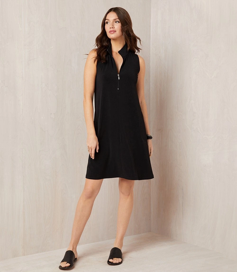 This jet-set ready dress is ideal for when you are on the go with its wrinkle resistant fabrication. It features a zippered neckline for a versatile look.