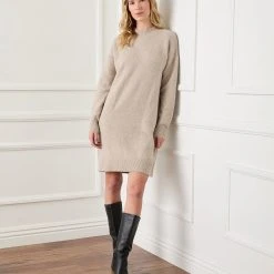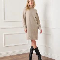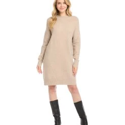 Comfy and easy – this cozy sweater dress will keep you warm and features an effortlessly generous fit. Pair it with a belt for a for a polished look.