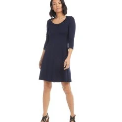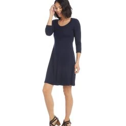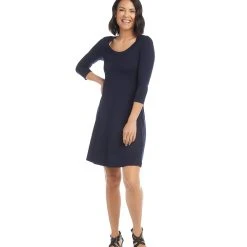 With a classic A-line silhouette, this 3/4 sleeve dress offers just enough flare to flatter any figure. Clean lines and solid colors complete the look with streamlined sophistication. Dress it up or dress it down, there is no denying that this is a must-have wardrobe essential that will continue to surprise you with its endless versatility.