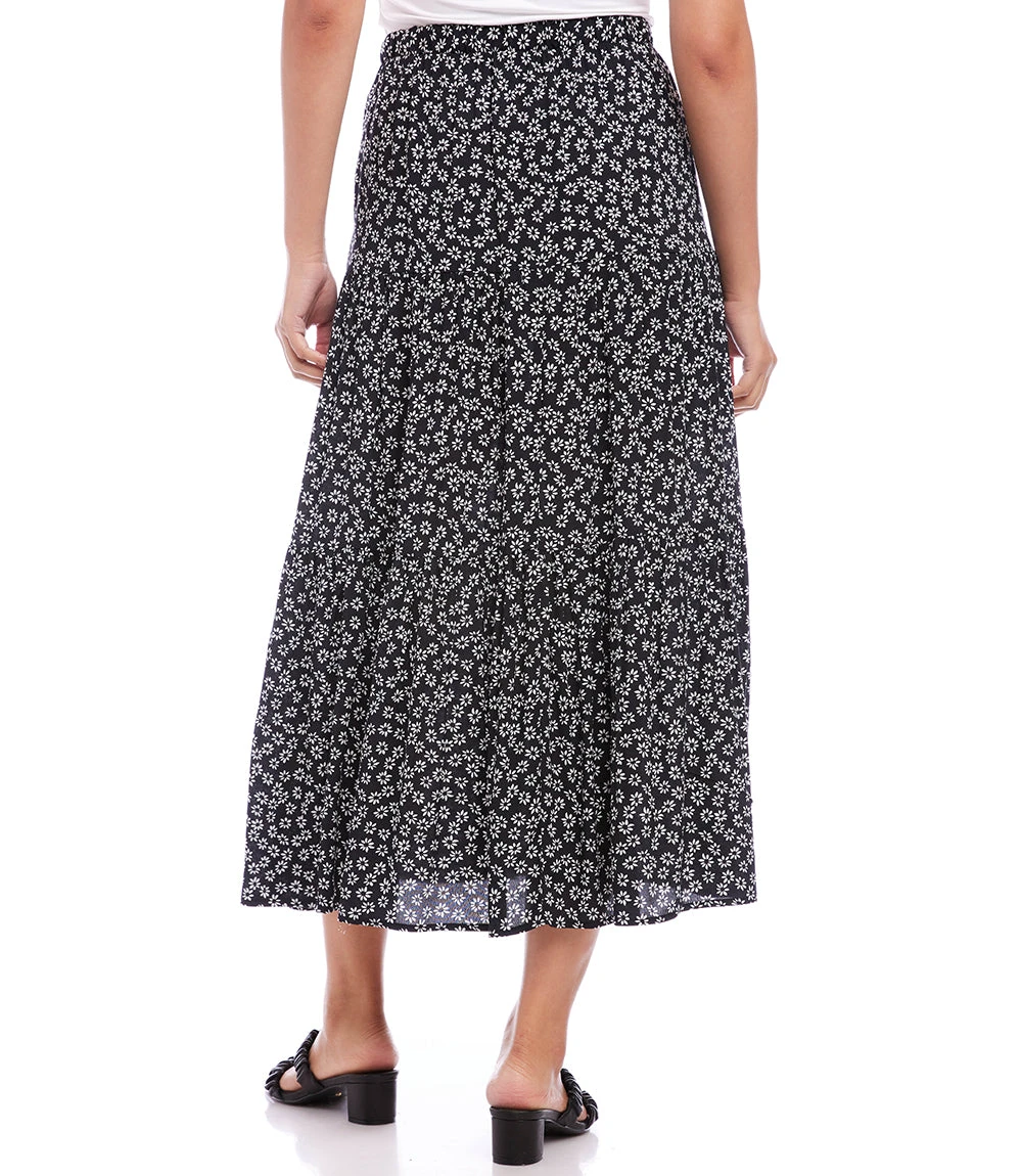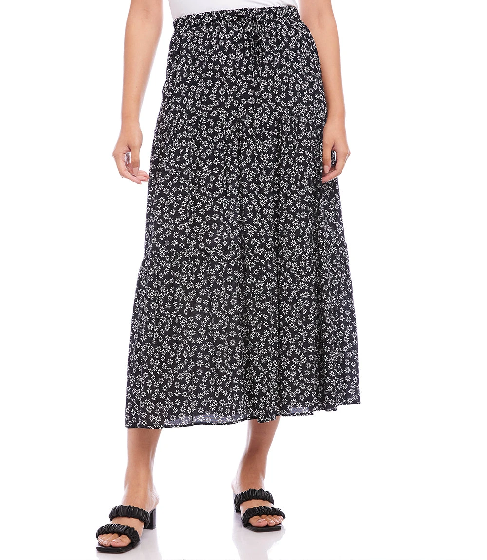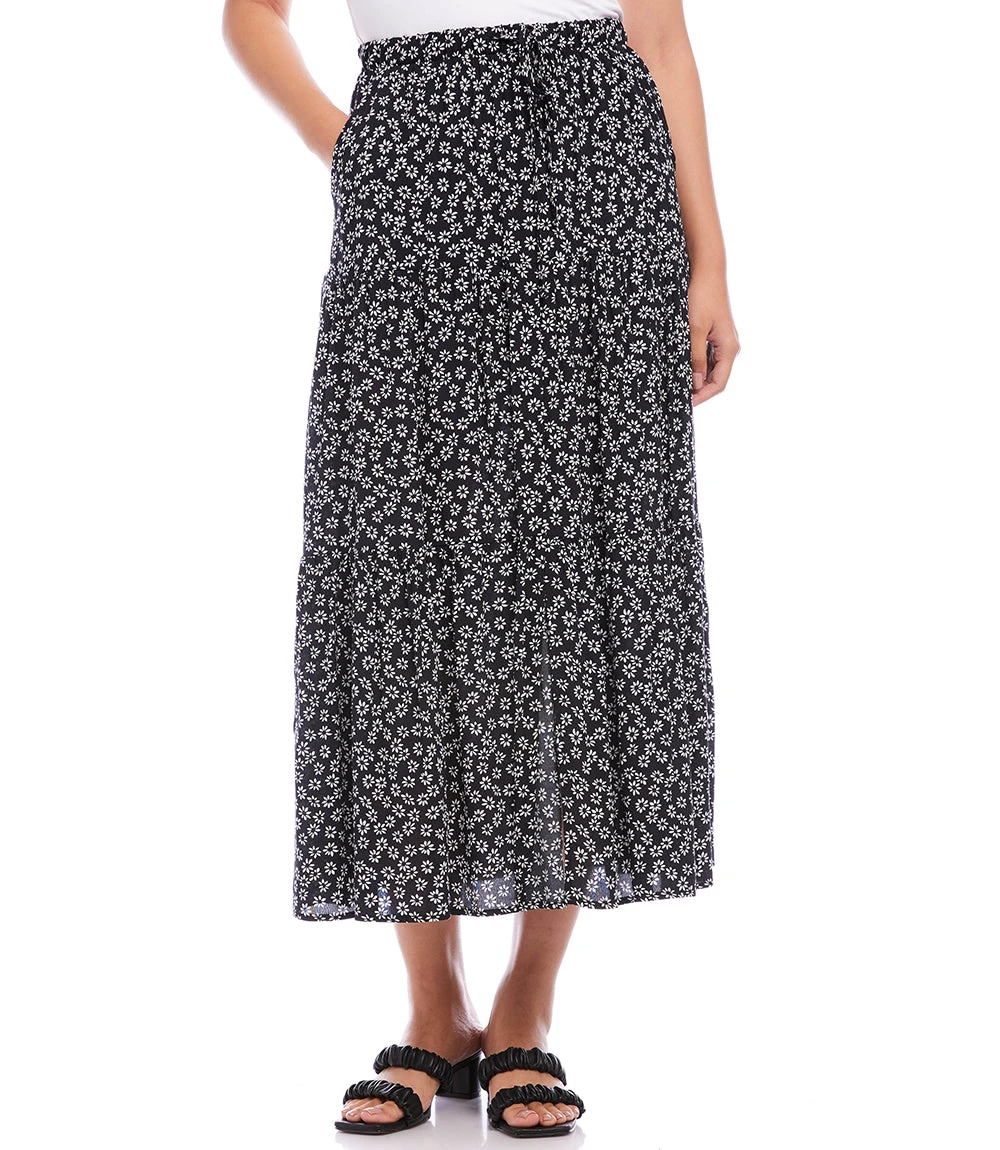Designed to add a dose of bohemian charm to your wardrobe, this free-flowing midi skirt features a charming floral print and an adjustable elastic waist. It also features handy pockets.