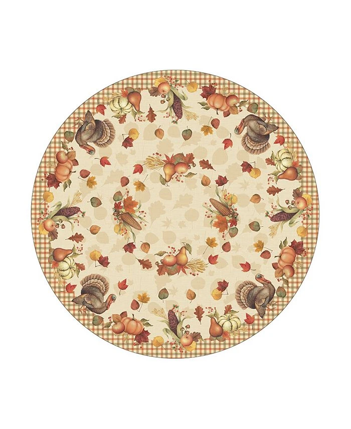 This gorgeous fall round tablecloth, “Bountiful Harvest”, will make family meals get-togethers feel extra special and heartwarming. Featuring fall hallmarks, turkeys, autumn leaves, pumpkins, this designβs warm soothing colors will get you excited for pies, casseroles, mulled wine.