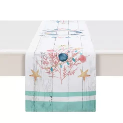 Set sail on a coastal escape this holiday season with Laural Home’s “Coastal Christmas”ย table runner. This lively design features nautical icons and coastal creatures on a boardwalk-like background. Bring the peaceful spirit of the sea to your home in time for the holidays.ย