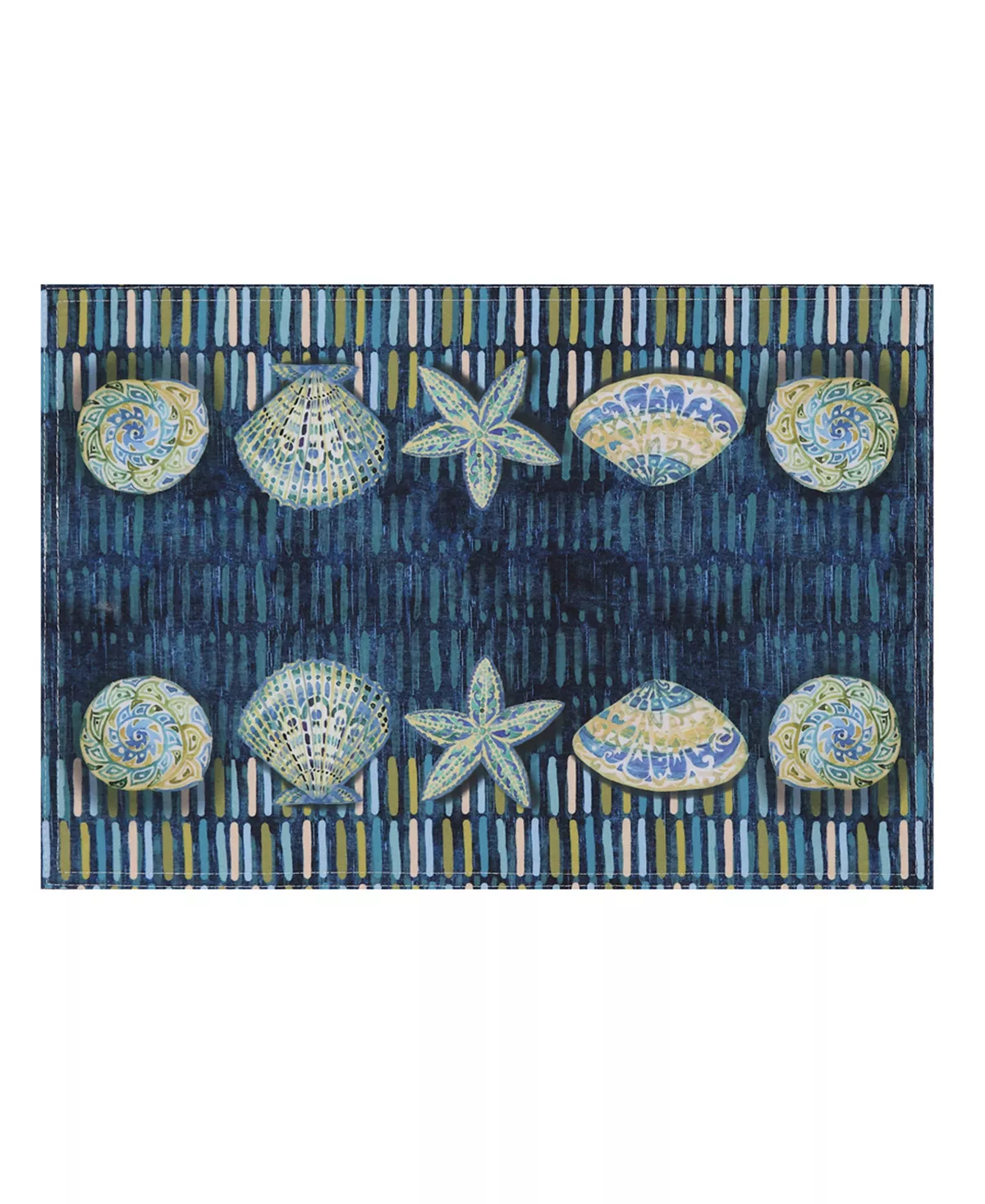 The coastal reversible placemat “Embellished Shells” is the perfect addition to your table. Mosaic-style shells and starfish create a classy nautical feel, while the textured blue background creates depth to the design. This fresh twist on coastal colors is the perfect touch to any seaside escape.