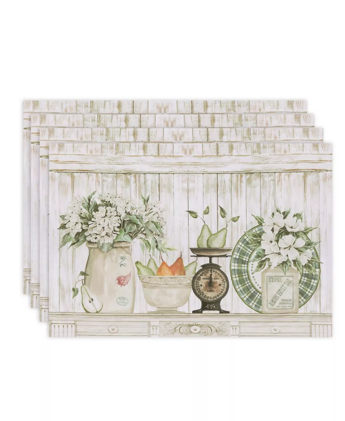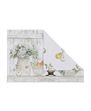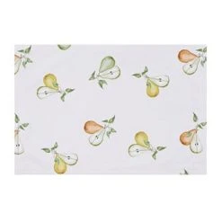 The simplistic and playful “French Pears” farmhouse reversible placemat is the perfect modern still-life. A whitewashed wood panel background adds depth and creates a rustic farmhouse feel. While the pears and mason jar serve as reminders that thereβs beauty in simplicity.