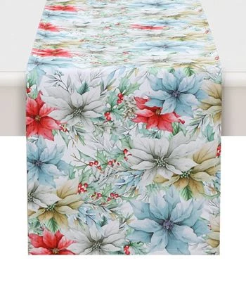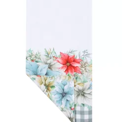 “Glad Tidings” is a chic and modern holiday reversible runner design. Dusty blue, mushroom, ruby red, and golden mustard watercolor poinsettias, placed on holly and a green-gray gingham pattern, create the epitome of a new take on a classic Christmas.