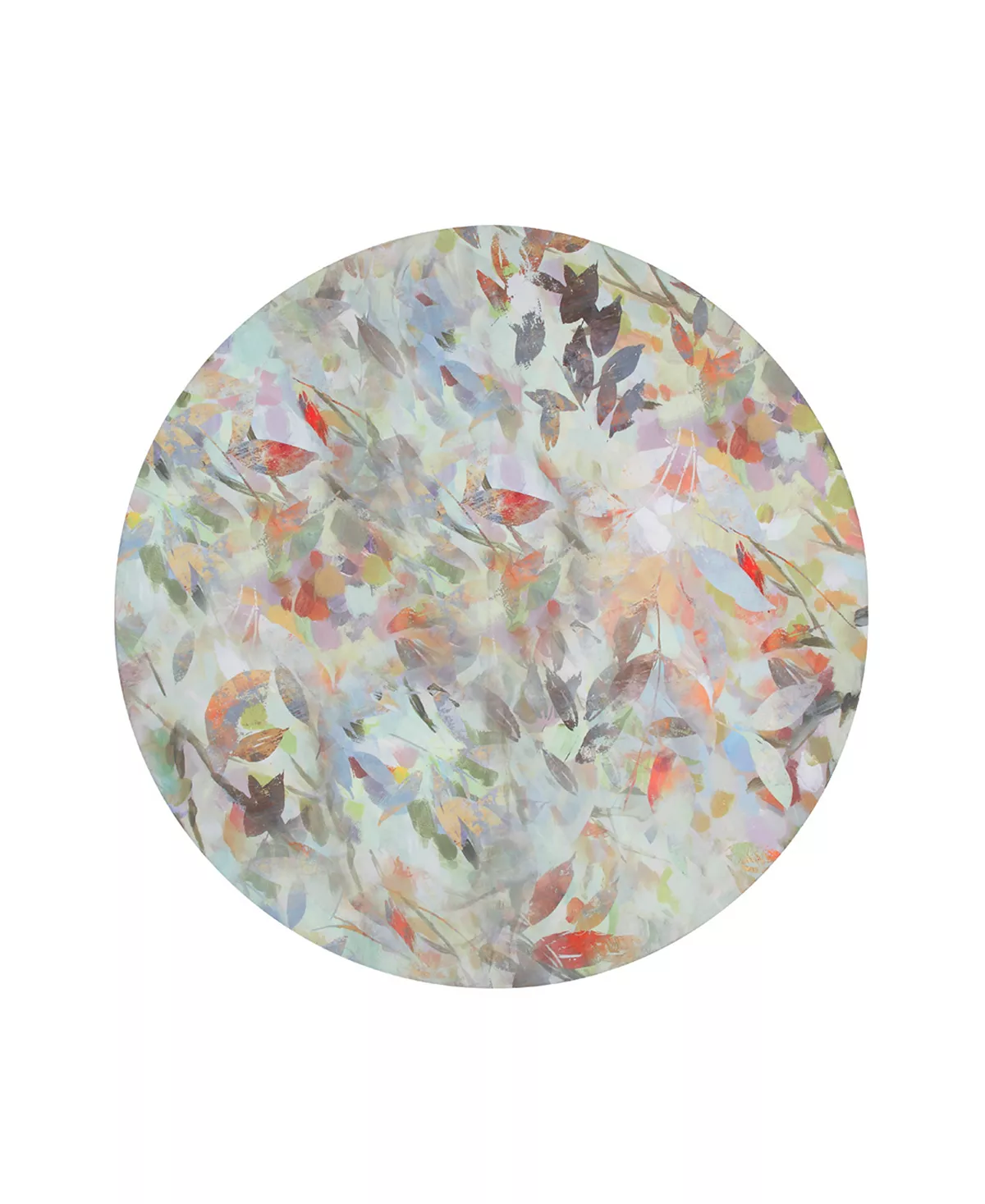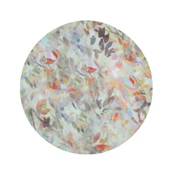 This landscape-inspired round tablecloth “Nature’s Melody” is a sweet and calming home decor look. The peaceful design features warm tones of green, red, brown, and orange leaves tossed to create an abstract multicolored look. This round tablecloth will bring a surreal scene of nature to any table.