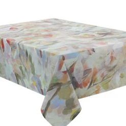 This landscape-inspired tablecloth “Nature’s Melody” is a sweet and calming home decor look. The peaceful design features warm tones of green, red, brown, and orange leaves tossed to create an abstract multicolored look. This tablecloth will bring a surreal scene of nature to any table.