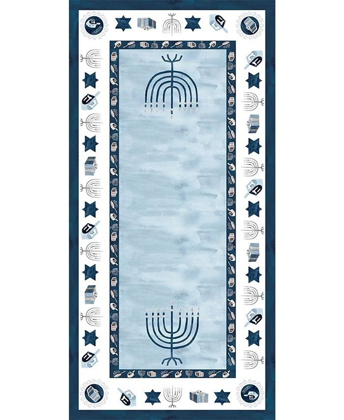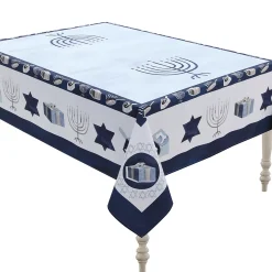 This tablecloth, “Happy Hanukkah”, features various Hanukkah motifs such as dreidels, menorahs, and Star of David on a white and light blue background. Whether youβre planning to invite your extended family or just a small circle, this lighthearted design will rise to the occasion.