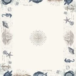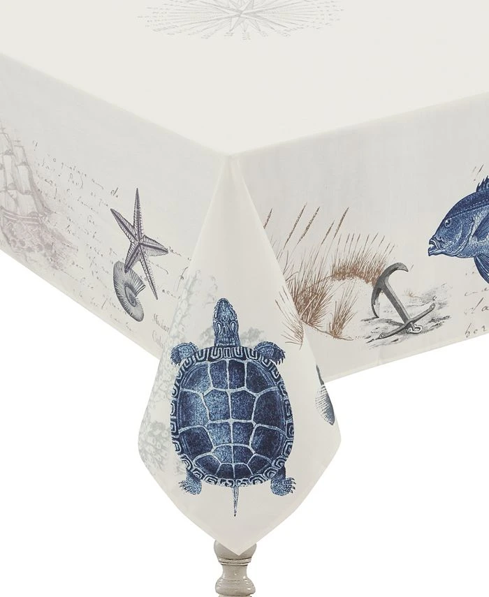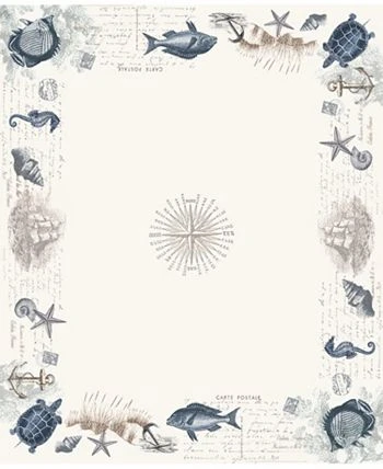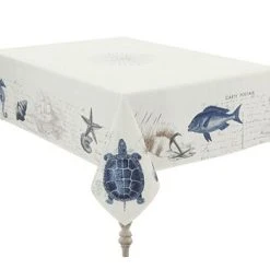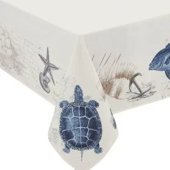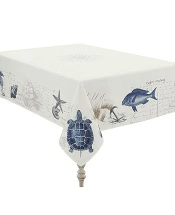 Enjoy the serenity of the seaside at your dining table with the Laural Home “Seaside Postcard” tablecloth. This tablecloth features a layered design of sea creatures, shells, and other coastal icons set on a postcard background which will make a unique, elegant addition to your dining decor.