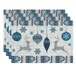 Fill your dining area with seasonal spirit courtesy of Laural Home’s “Simply Winter” placemats. This fun, patterned design features dancing reindeer classic snowflake icons in cool winter blue hues which will make this design a unique, elegant addition to your dining decor this holiday season.