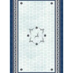 Fill your dining area with seasonal spirit courtesy of Laural Home’s “Simply Winter” tablecloth. This fun, patterned design features dancing reindeer classic snowflake icons in cool winter blue hues which will make this design a unique, elegant addition to your dining decor this holiday season.