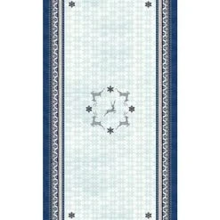 Fill your dining area with seasonal spirit courtesy of Laural Home’s “Simply Winter” tablecloth. This fun, patterned design features dancing reindeer classic snowflake icons in cool winter blue hues which will make this design a unique, elegant addition to your dining decor this holiday season.