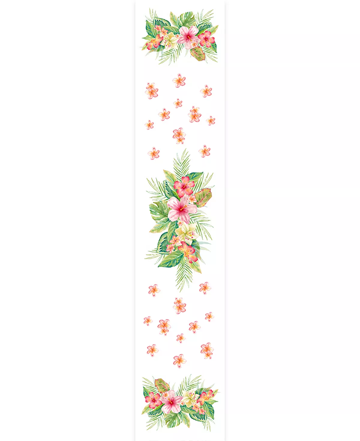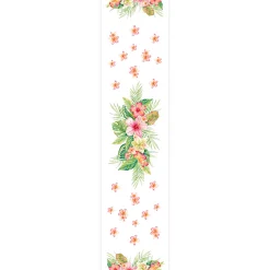 This tropical themed runner, “Tropical Island,” is a bright fun design that will liven up any dining space. This watercolor styled runner features vibrant pink, orange, green tropical flowers leaves against a white background. “Tropical Island” will bring a fresh Summer vibe into any home.