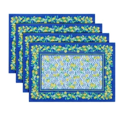 These seasonal placemats, “Lovely Lemons” will truly liven up any dining room. The design features vibrant, yellow lemons with daisies against a bold blue background and quatrefoil center for an elegant feeling. Add this soft to the touch placemats to your dining decor for a modern beautiful look.