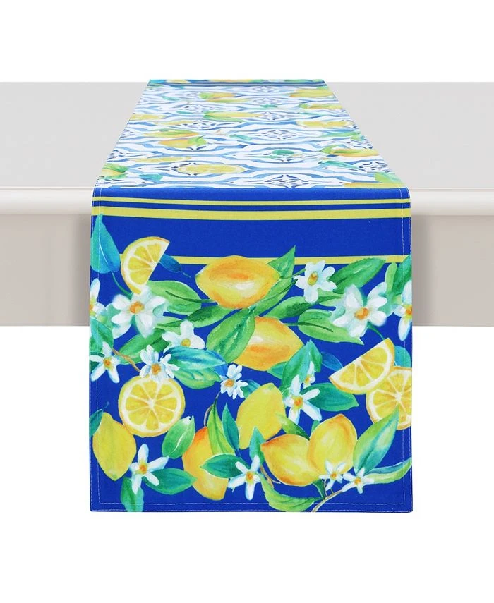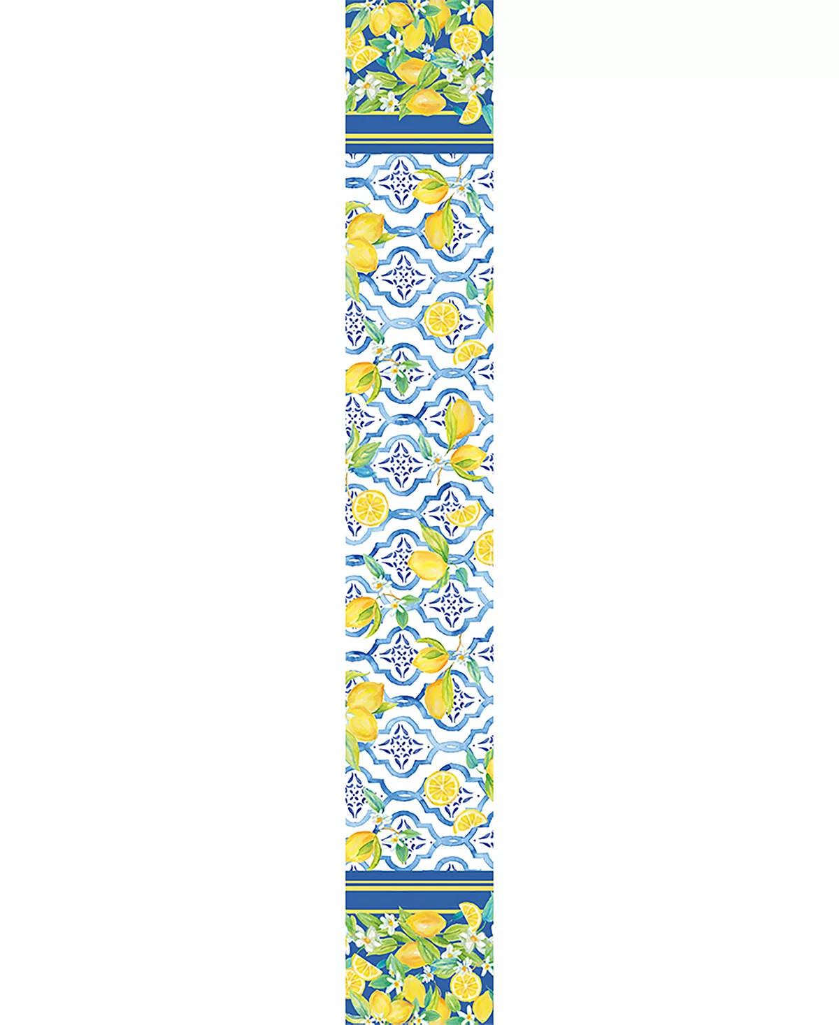 This seasonal runner, “Lovely Lemons” will truly liven up any dining room. The design features vibrant, yellow lemons with daisies against a bold blue background and quatrefoil center for an elegant feeling. Add this soft to the touch runner to your dining decor for a modern and beautiful look.